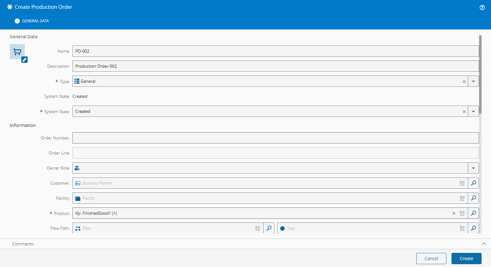 - Optionally, specify the Order Number this Production Order refers to.