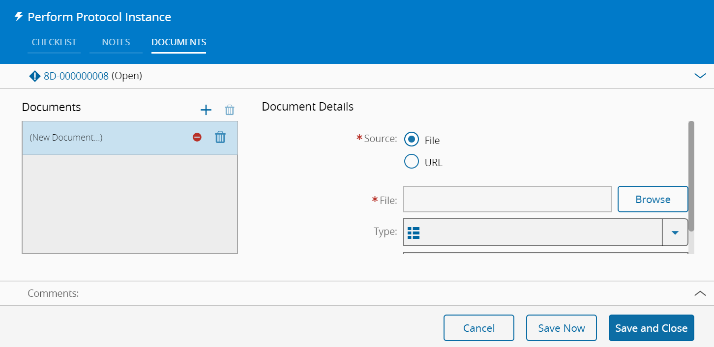 - Attach or provide a URL to add a Document.