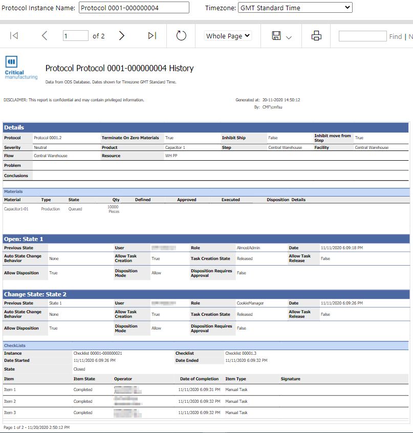 This operation is used to generate and visualize reports on a Protocol Instance history.