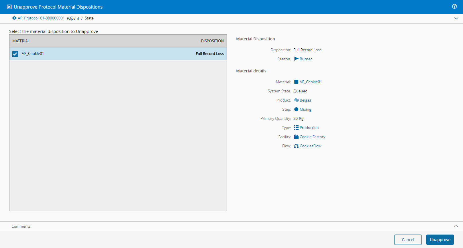 - Choose Unapprove Dispositions and once in the Dispositions unapprove wizard, select the Material Dispositions that you want to unapprove.