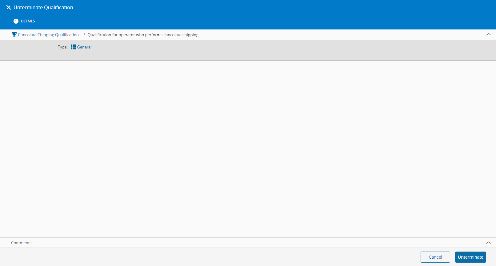 The Unterminate Qualification wizard can be called from the Qualification page within the Business Data Group.
