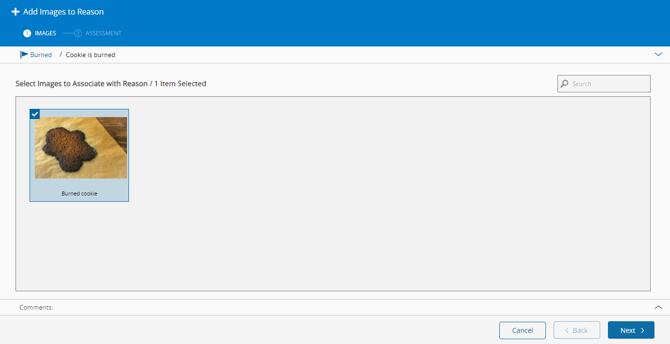 For each of the images selected in the previous step, define an Assessment from the available options: