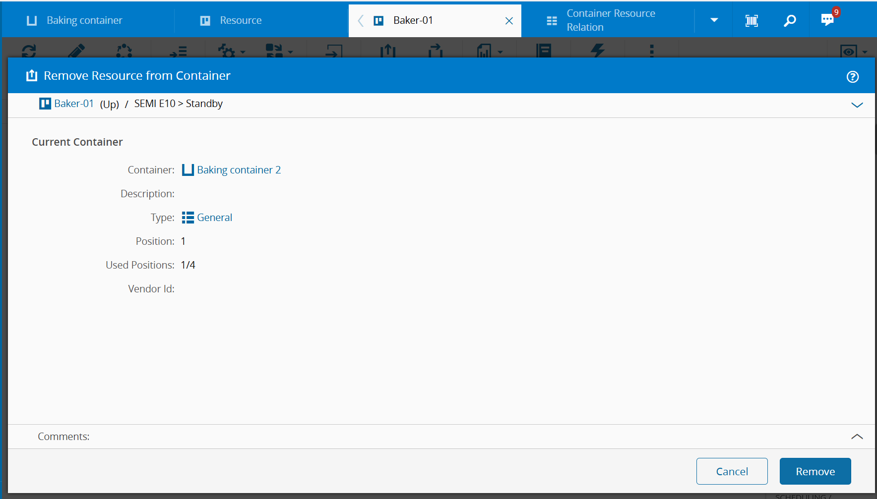 3. Verify if the information presented corresponds to the Container you want to remove the Resource from.