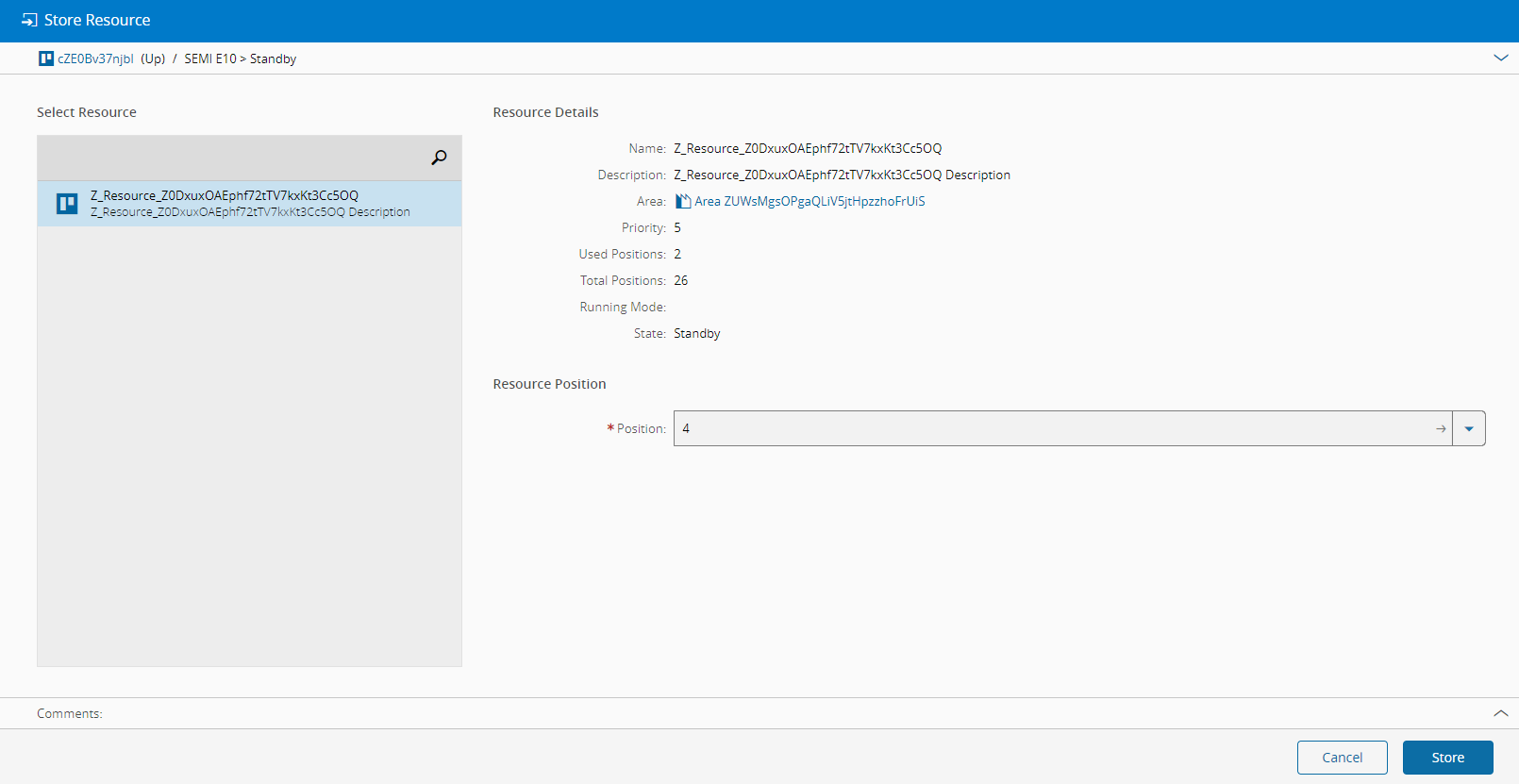 - Depending on the Resource Track Positions property, it may be necessary to provide a valid position. Note that in this case the provided position address must be compliant with the defined Resource position address format.
