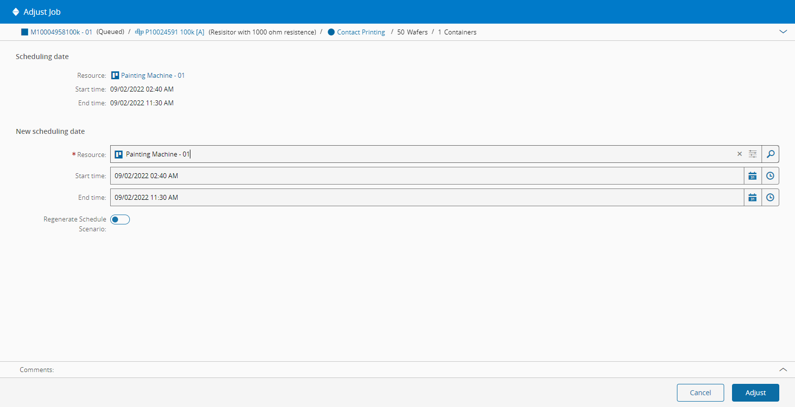 Adjust Schedule Scenario Job#