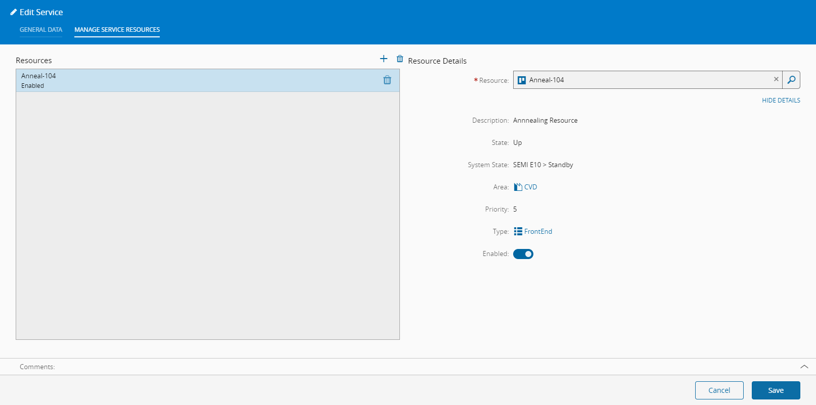Note: The Name of the Service cannot be altered. Also, processing type can't be changed if there are any Resources that provide the current Service.