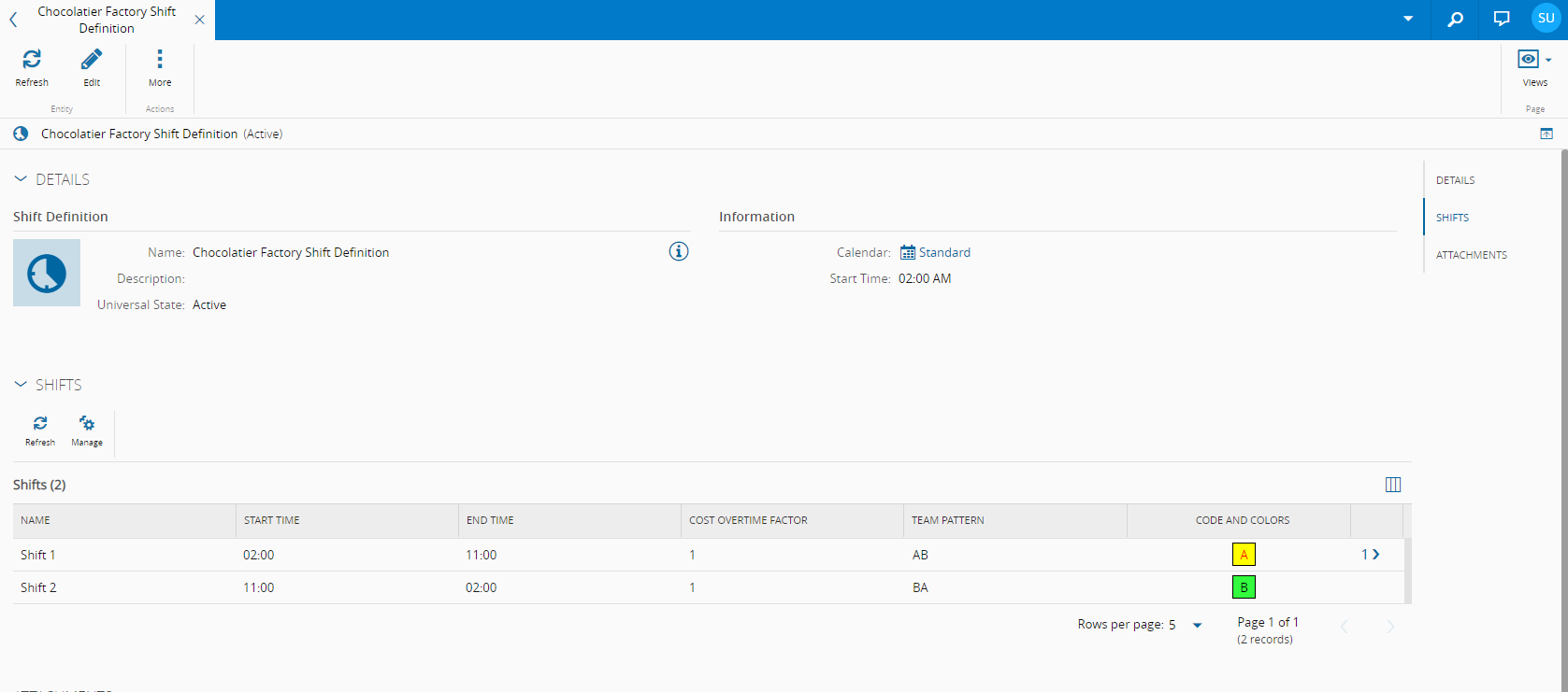 - Attachments - shows the documents that are attached to the Shift Definition and enables the user to attach additional documentation to the Shift Definition.