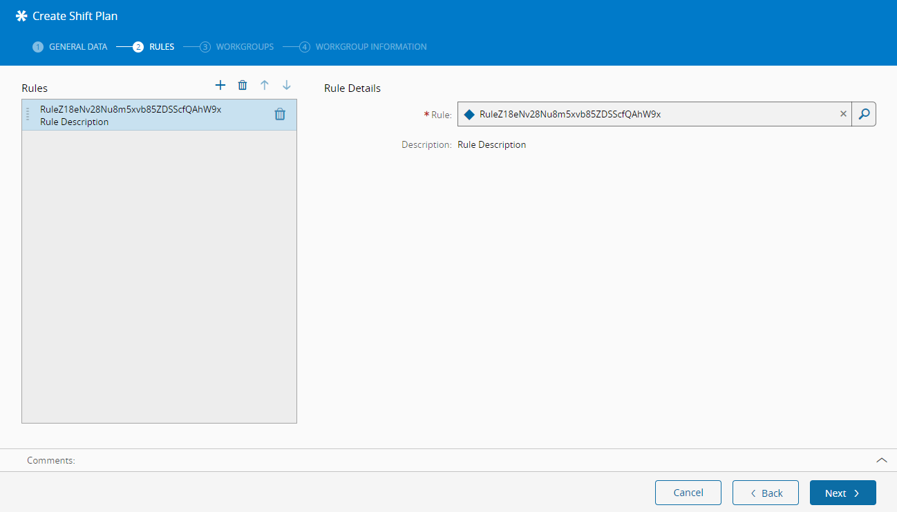 - Optionally, enter a list of Rules of scope ShiftPlanning to validate specific working time rules.