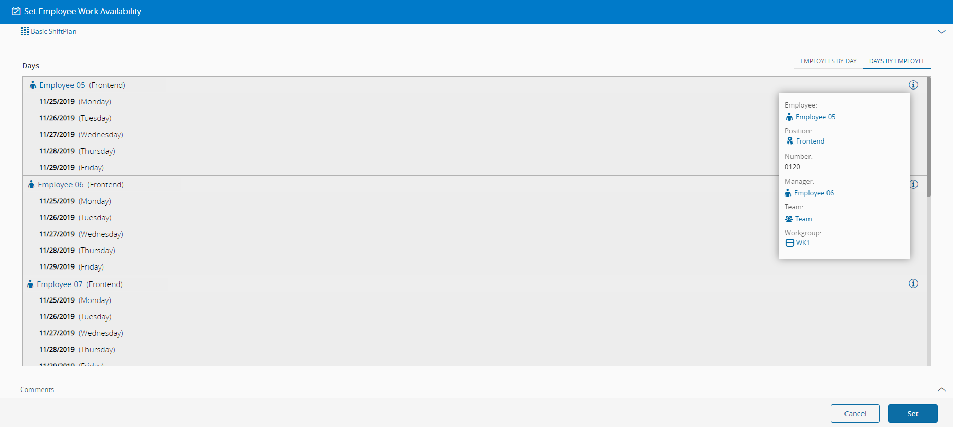 Set Employee Work Availability#