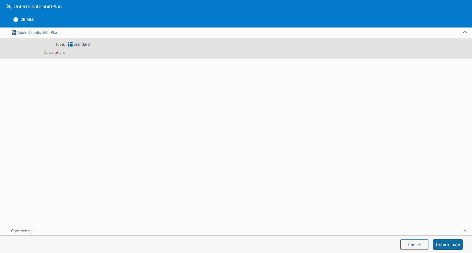 This operation is used to Unterminate a Shift Plan.