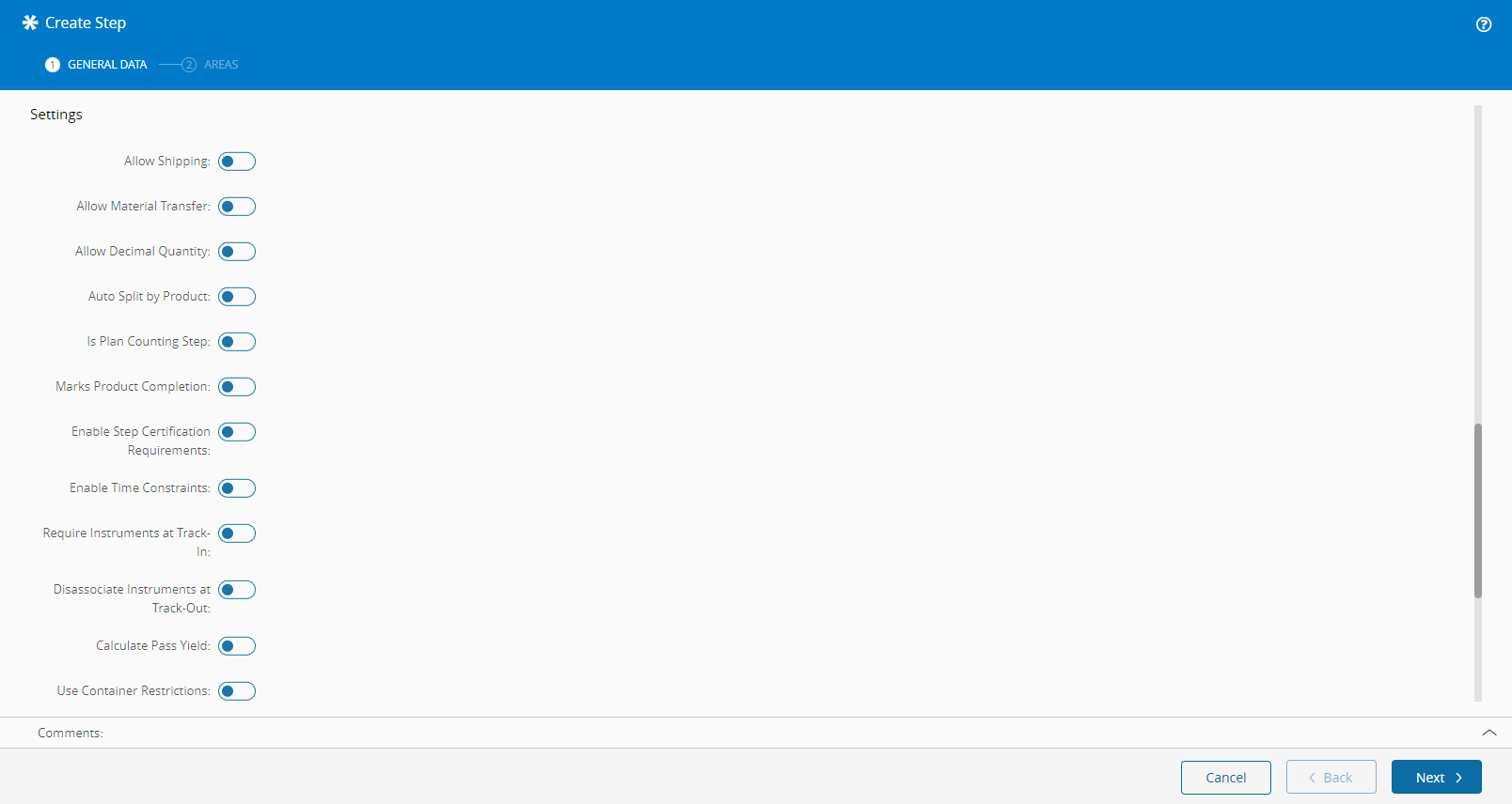 - If the Step is not Pass-Through, define whether or not the Step is a Packing Step. If the Packing Step property is set to