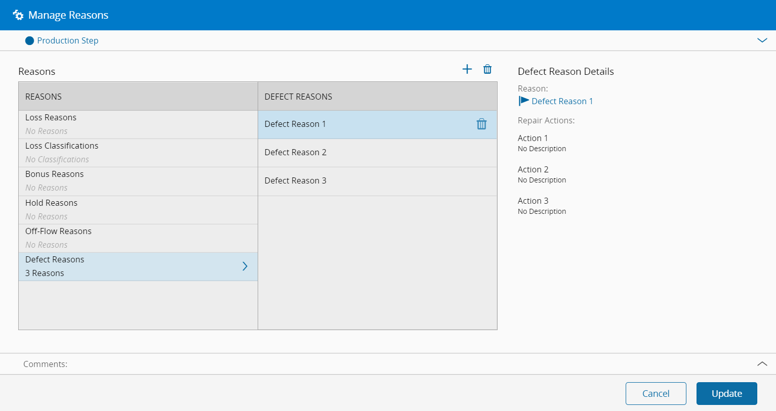 - Go to the Reasons tab on the sidebar and specify the Reasons for the Step.