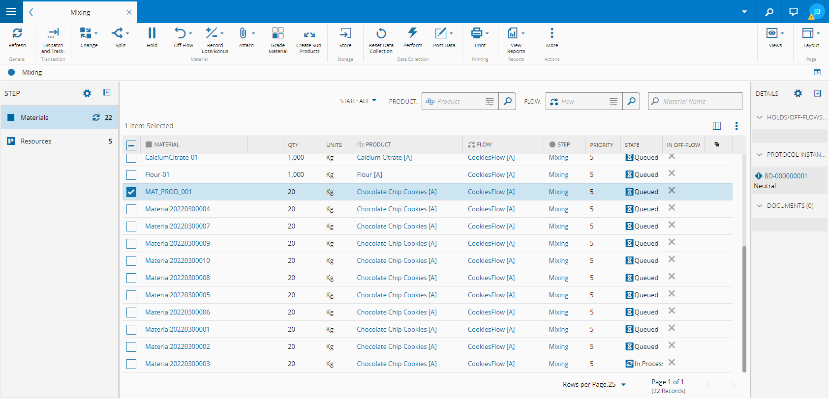 The Step view lists all the Materials currently at that Step, as well as their state:
