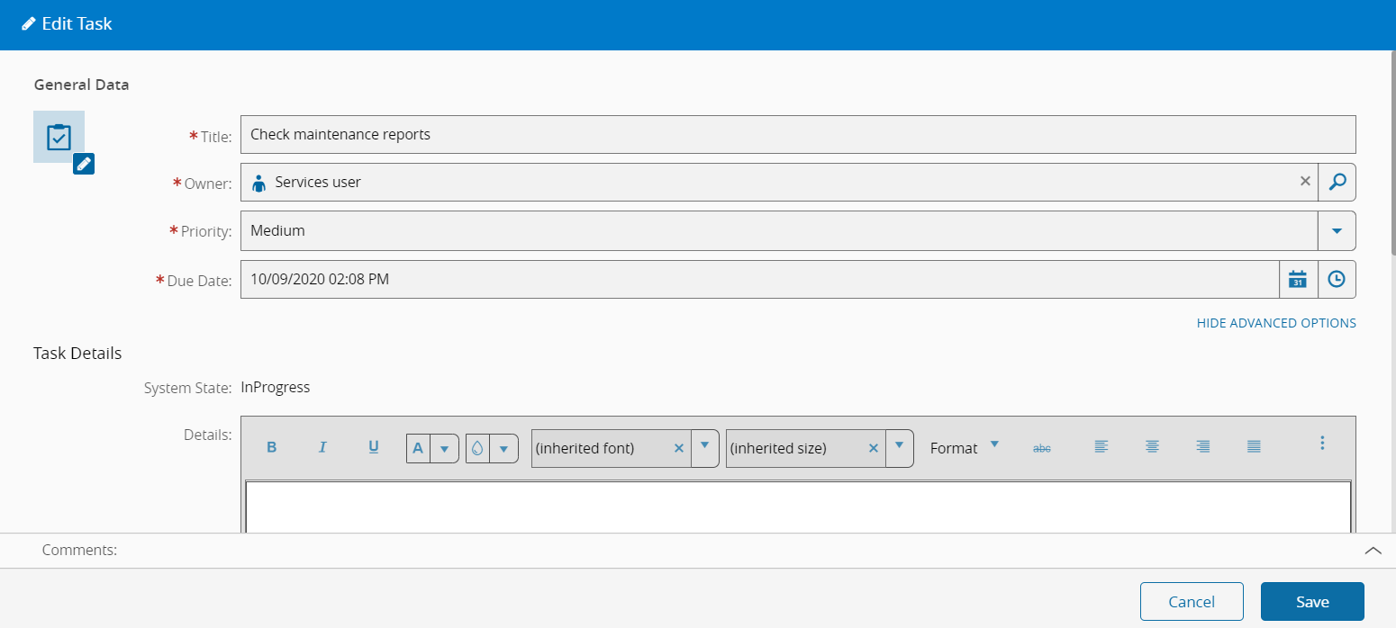 This operation is used to Edit a Task.