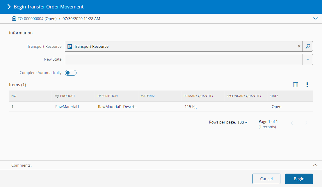 - If there is an Owner defined for the Transfer Order, the current Employee must match that Owner.