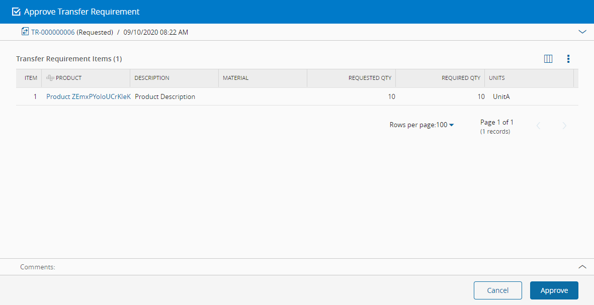This operation is used to approve a Transfer Requirement.