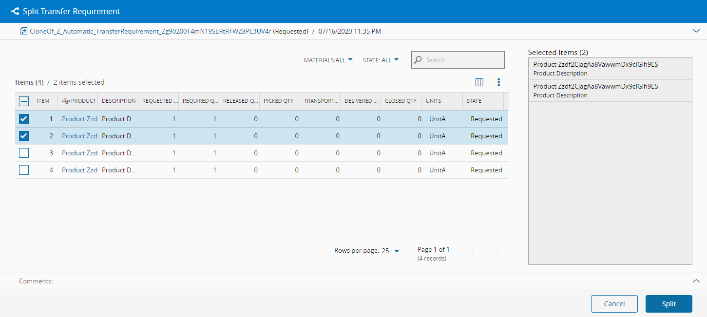 This operation is used to split a Transfer Requirement. There are several possible reasons to split a Transfer Requirement:
