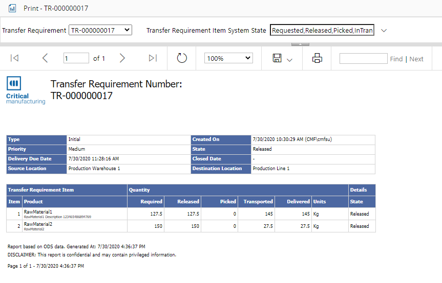 - Press the View Report button in the top ribbon to complete the operation. A window will open with a formatted report to be printed.