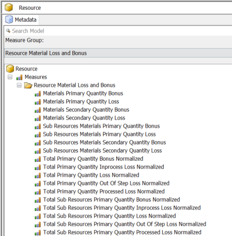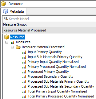 Material Hierarchy - This dimension allows the filtering of the materials according to their hierarchy. This filter is associated with measures within the Resource Material Processed and Resource Material Loss and Bonus measure groups. The available options are: