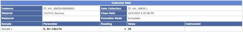For Materials that have a Data Collection associated with an Inspection Plan the expected behavior is that when the Material is tracked, the data collection instance is created, and the data collection points are created with empty values (values = null.) For this reason, if a track-in is performed but no data collection values are posted, the data collection information will be shown as empty in the report.