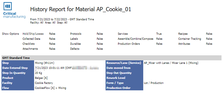 The available date filters (Start and End) should be used exclusively to select the entry and exit dates in the Steps where the Material has passed. Therefore, once the sequence of Steps included in the timeframe is determined, all associated information will be displayed, along with information on attachments that are not bound to a particular Step, provided that the Material was in a Step during that timeframe (that is, between Date Start and Date End).
