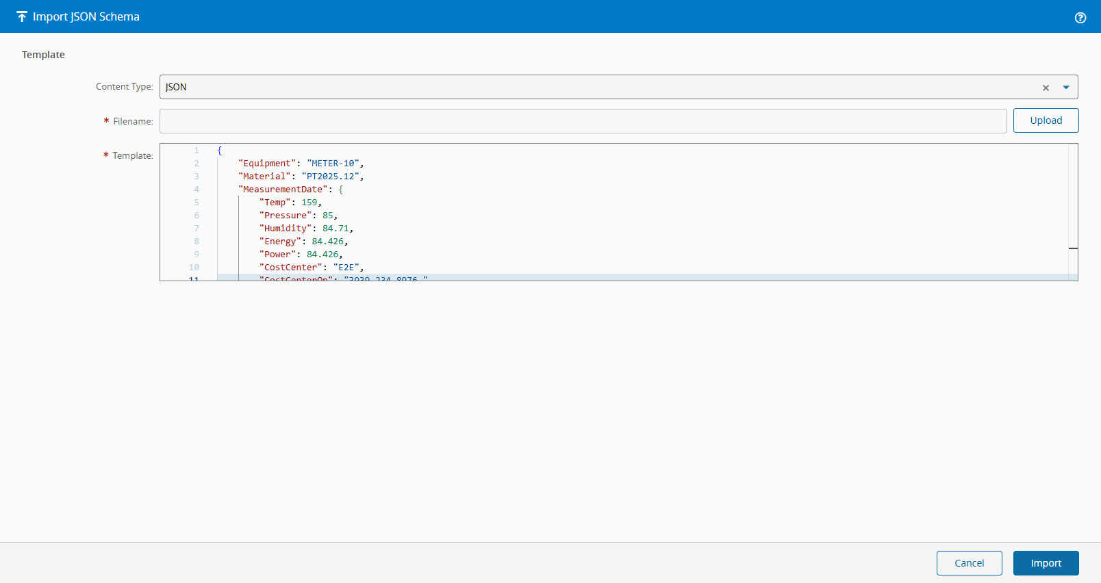 Alternatively, you can also import a JSON or CSV definition of the desired schema by selecting the Import JSON option in the same dropdown.