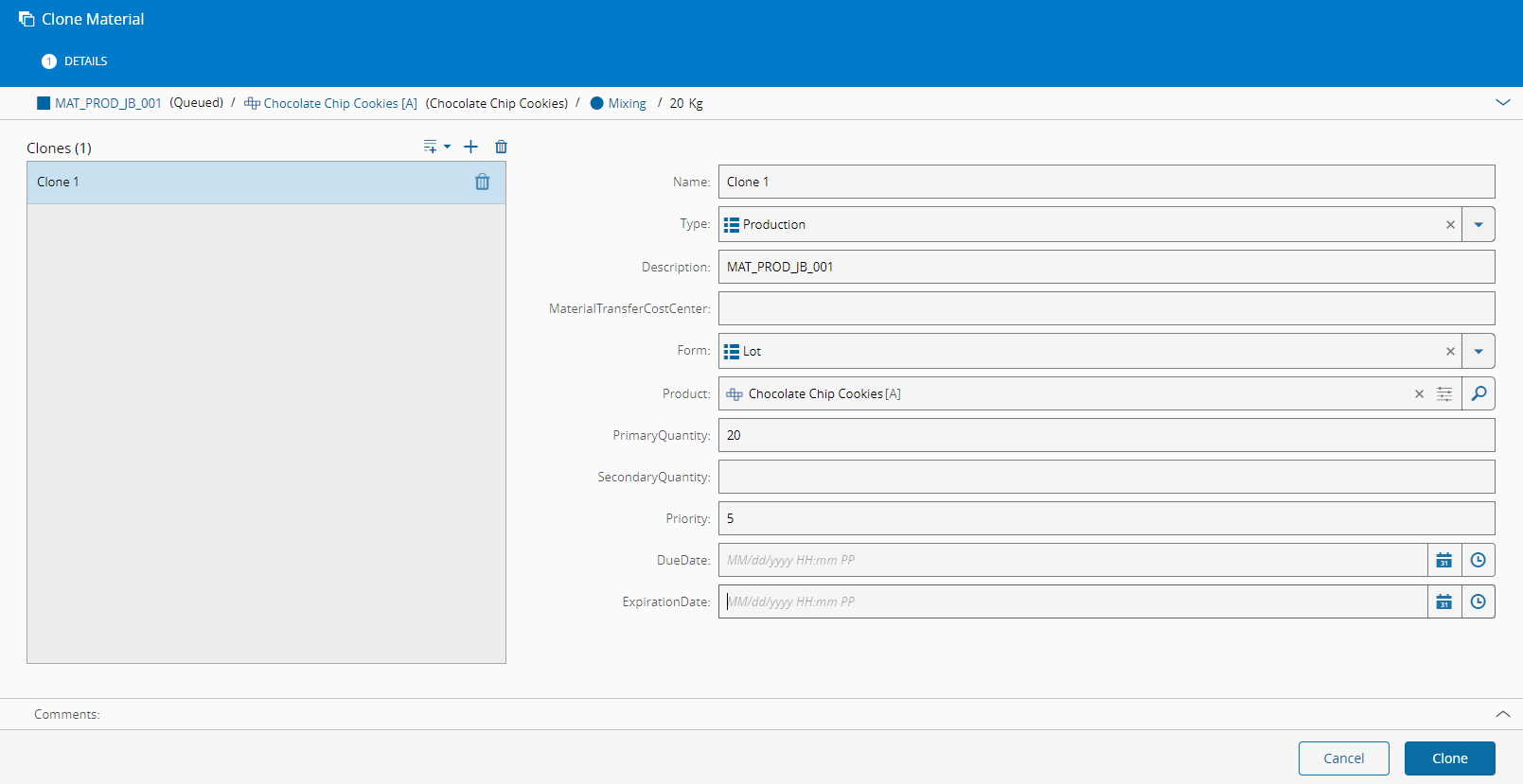 All entities allow cloning and you can select the number of clones that will be created at any single time by using the multiple clone button and specifying the number of clones that will be generated.