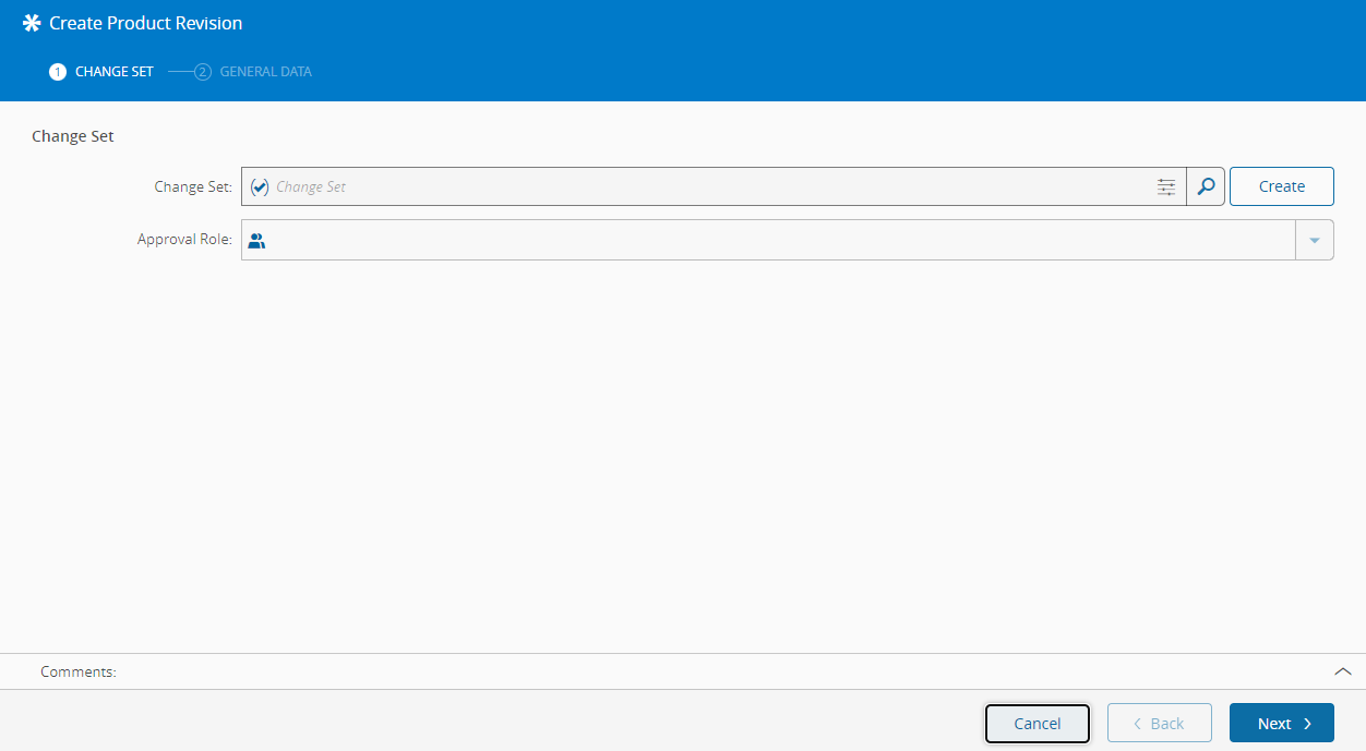 After filling the necessary information (that will be different for each entity type), the system will create a new revision and the first version for that revision. The new revision will require a Change Set so that a version can be associated to it and be set as effective. The Change Set is then associated to the actual version and not to the revision.