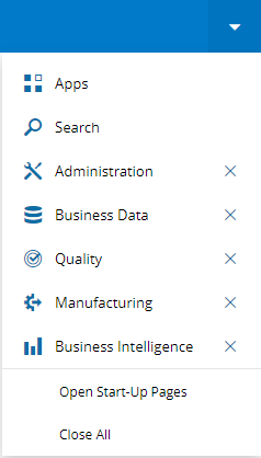On the far right of the header, there is a dropdown menu that opens an index of all opened pages and that allows you to close the opened tabs all at once. In addition, it enables you to perform a search or to return to the home page.