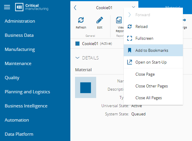 Bookmarks provide you with a shortcut to your favorite pages and enable you to quickly navigate to them.