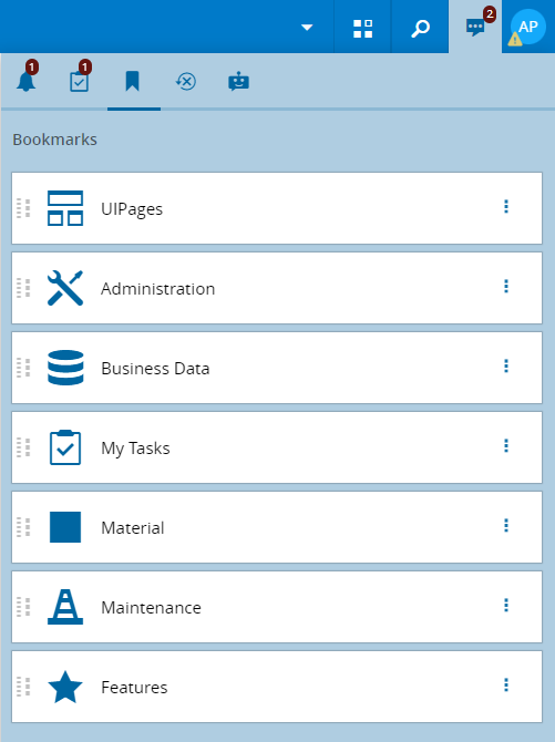 All your bookmarked pages will be readily available in the Bookmarks section of the Activity Center. This means you can open any of those pages from there by selecting the respective icon.