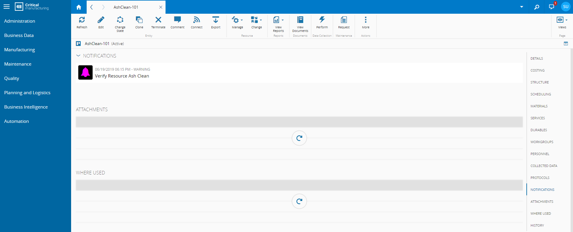 Notifications are part of Alarm Management, which is a Critical Manufacturing optional module.