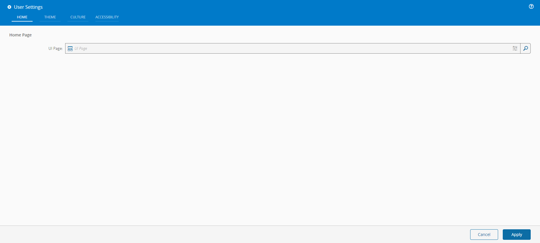 In the Home Page tab, you can decide which UI Page will open when the system is first loaded. To change it, select a new UI Page and the next time the system opens that UI Page will be the landing page: