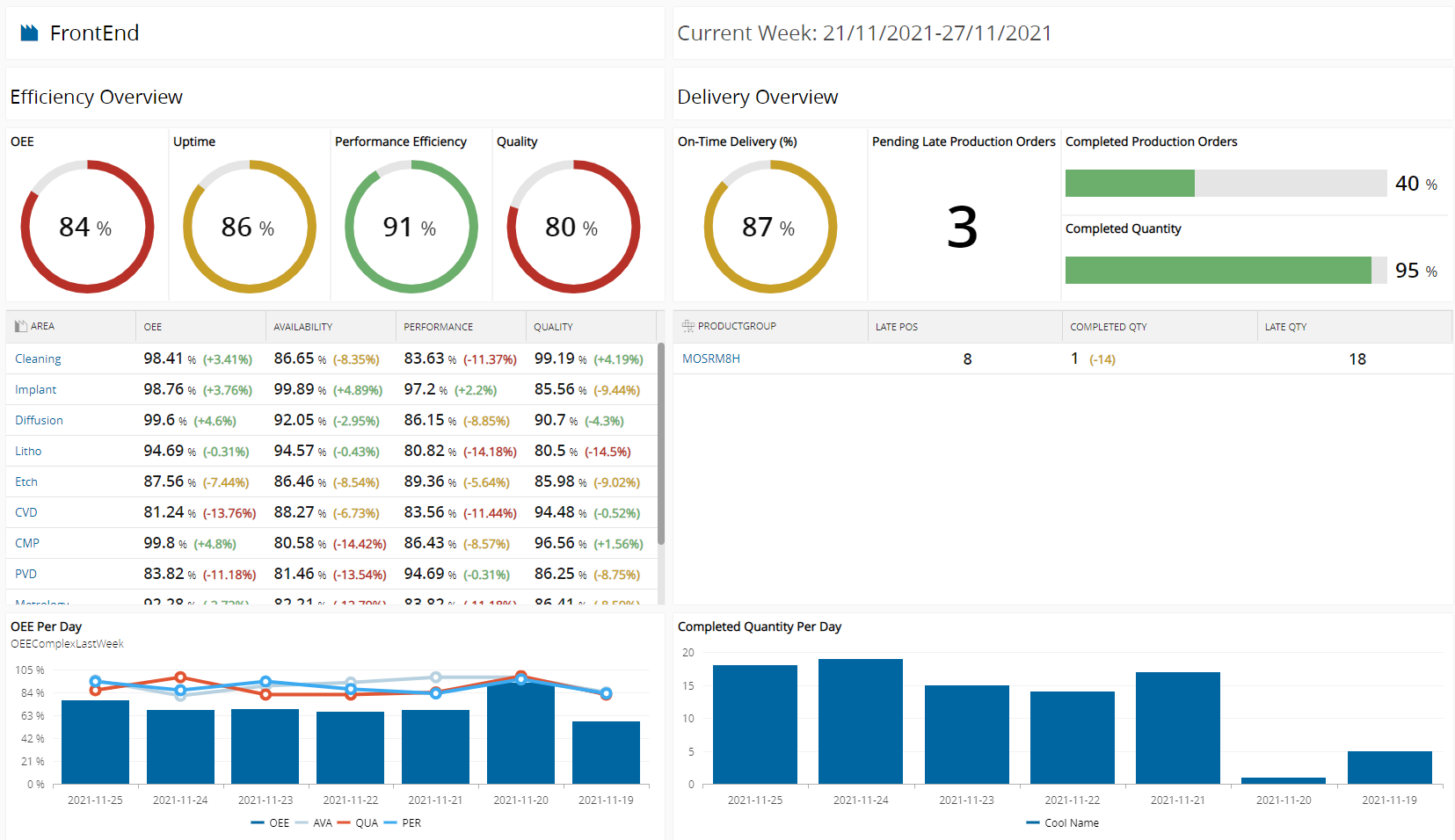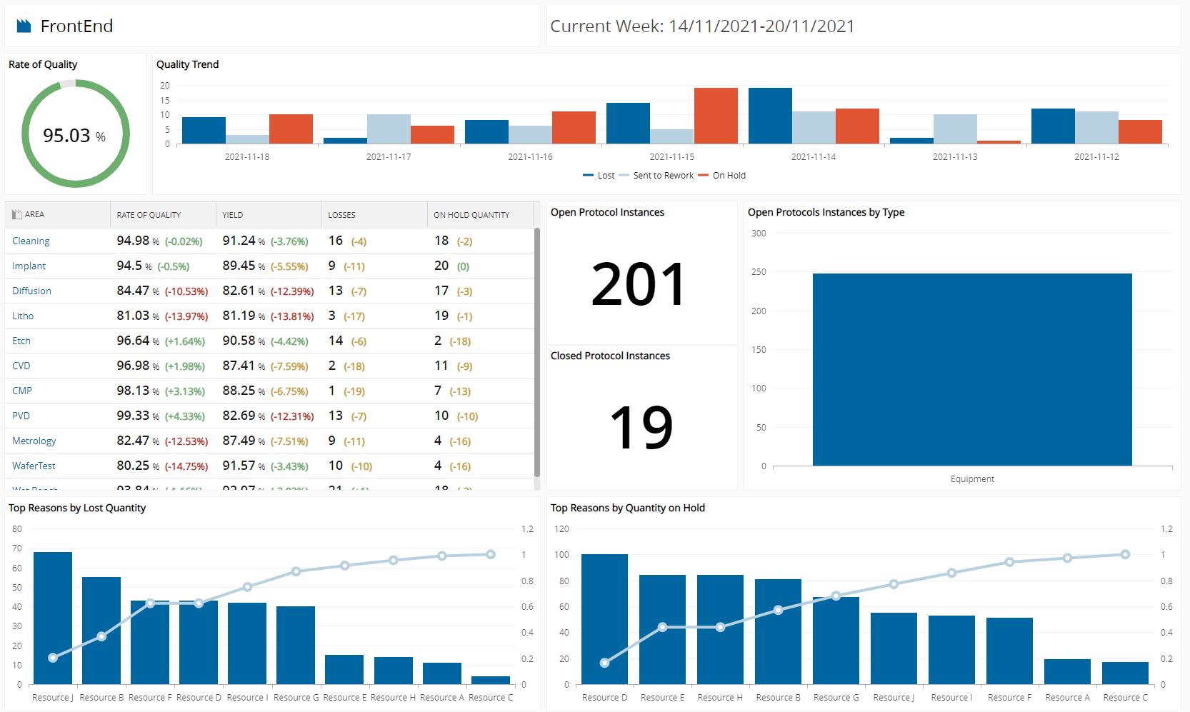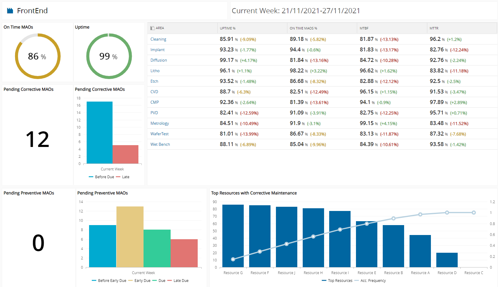 This view, opened by pressing one of the Areas is one detailing the Steps, as well as the Resources that can have the necessary Services for a certain Step. Here, there is also the indication of how many Materials are at a certain Step; for each Resource, it is possible to identify the state in which the resource is, by observing its color: