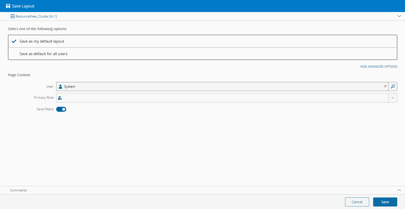 [ StepView or ResourceView ].SaveUserDefaultLayout