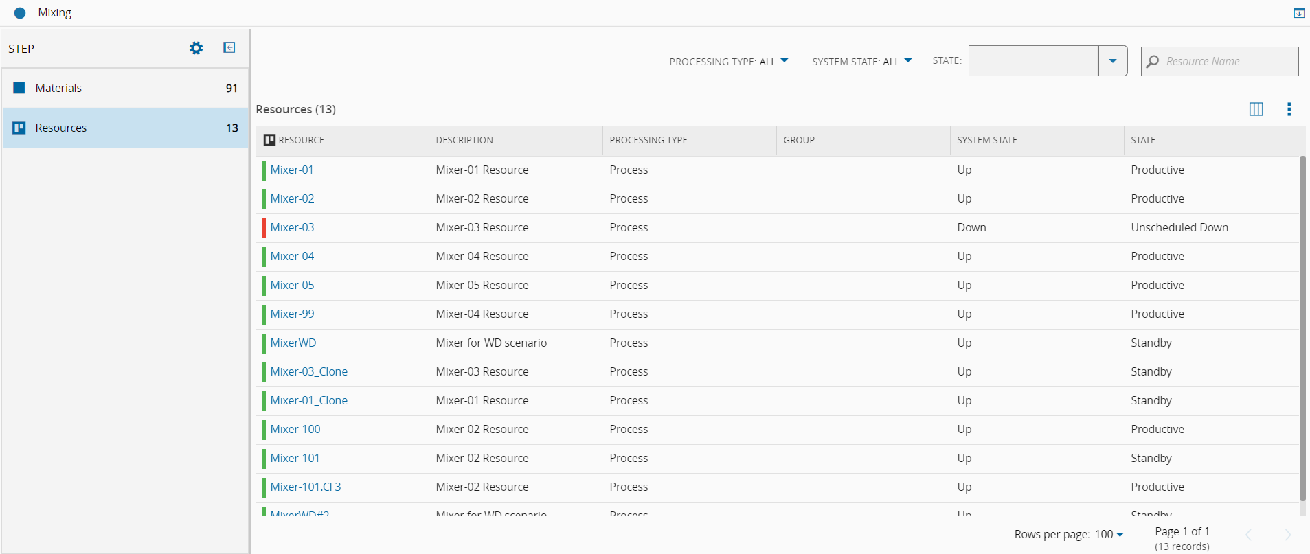 A list of the Resources that are be used to process Materials on that particular Step can also be displayed: