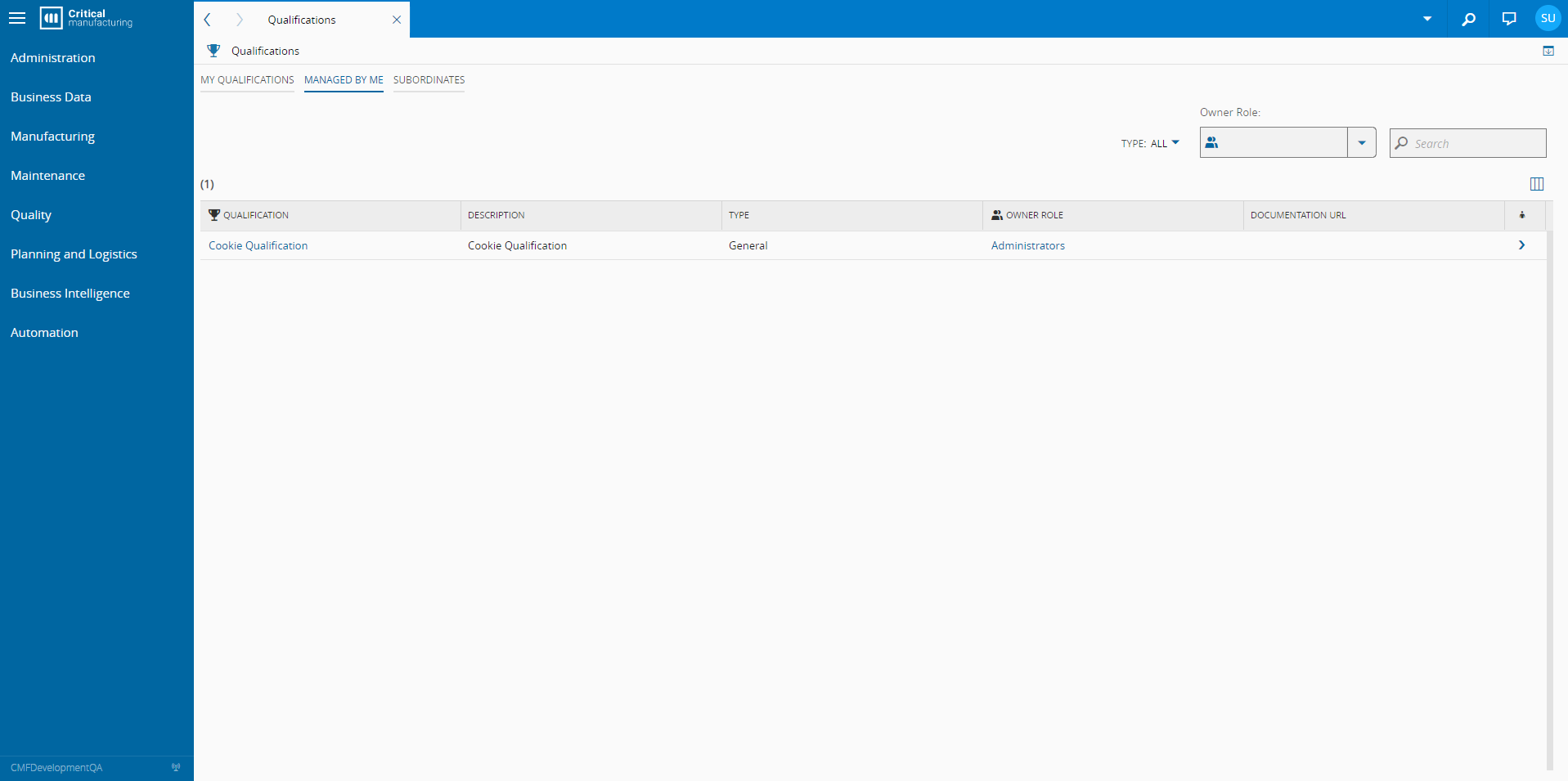 This page provides a view of all Qualifications to which the current user belongs, within the owner role.
