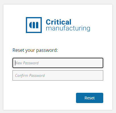 Accessing this URL should present the Critical Manufacturing MES to be used. In this case, you must log in and because this is the first login, the credentials in the Summary must be used to access the system and the password must be reset after logging in: