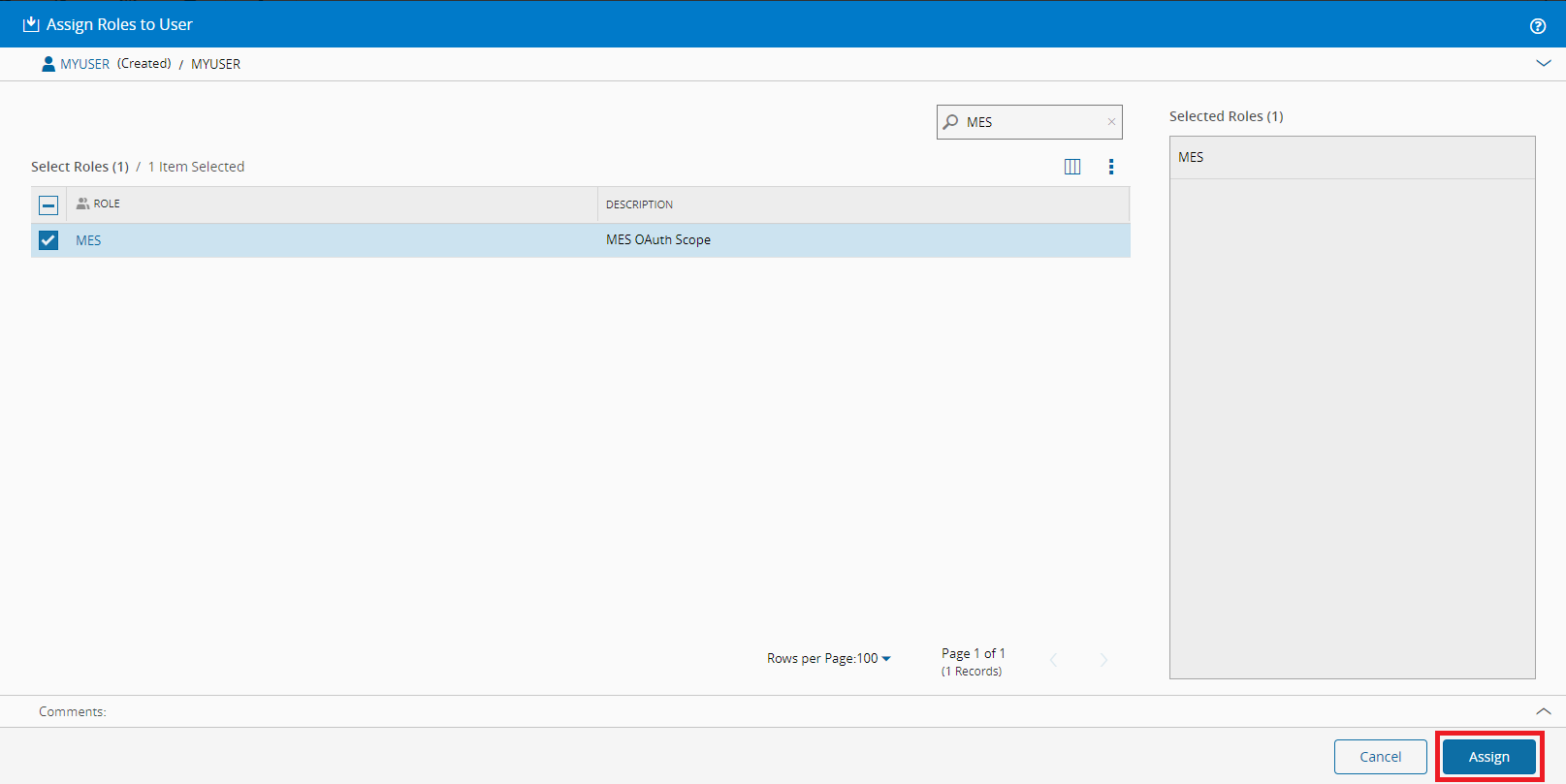 At this stage, only Administrator users have access to the MES. To allow other users to access it, you need to assign them the MES OAuth Role in the security page: