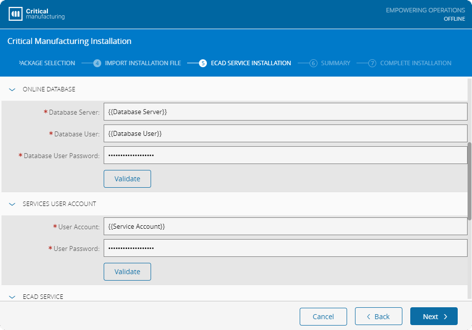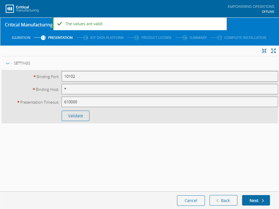 By now, the base application and its features are set. Before starting the deployment process, you need to configure the base application and features with the required data. The following steps address the available configurations for each different part of the system. Bear in mind that the Configuration Level and License have an impact on how many steps and parameters are shown along with the available Critical Manufacturing MES features.