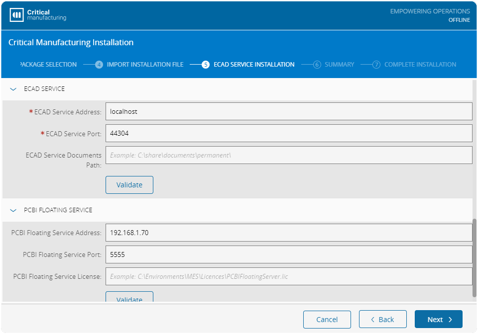 Configure the settings for the ECAD Service. The PCBI Floating Service Address should use the default IPv4 address and the PCBI Floating Service Port can use any available port.