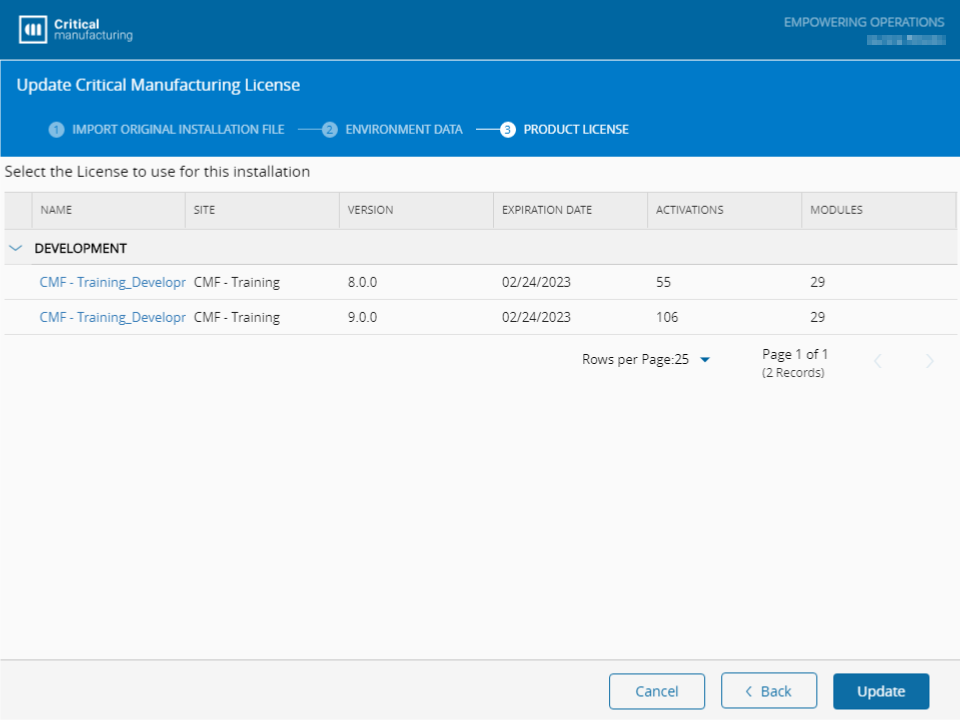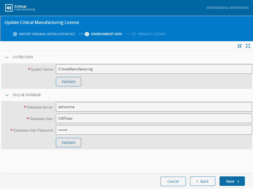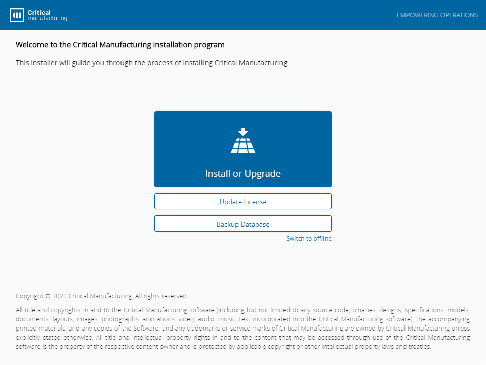The Product License can be updated using the Critical Manufacturing setup program in three ways: