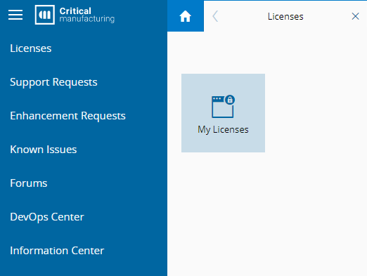 - With a different device, log in to the Critical Manufacturing Customer Portal with a User that has access to the required license.