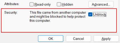Random errors may occur during the Critical Manufacturing MES installation process if it is initialized using a blocked ISO file. This occurs when Windows Attachment Manager marks ISO files as blocked (more information here ⧉).