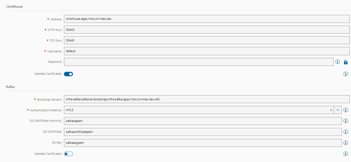 - Validate certificates - Toggle to enable or disable server certificate validation. Applies to Authentication Method: mTLS.