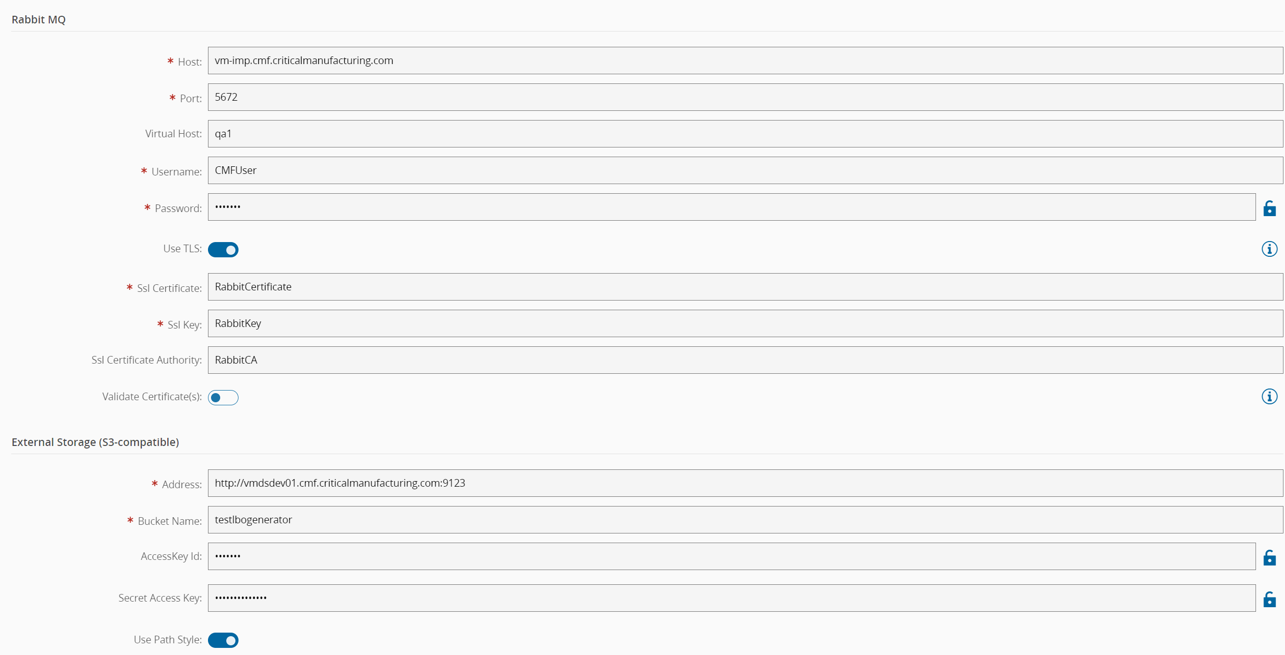 - Use TLS - Toggle to enable or disable TLS for RabbitMQ communication.