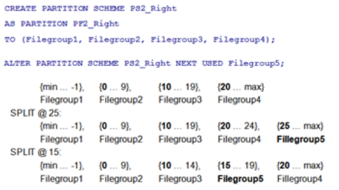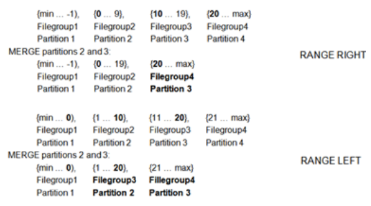 对于范围右侧,SQL Server会将Filegroup3上的旧分区3中的所有数据移至左侧带有合并分区2的Filegroup2中。由于插入和删除,此数据移动将导致事务日志增长。Filegroup3将是默认的“下一个使用”文件组。