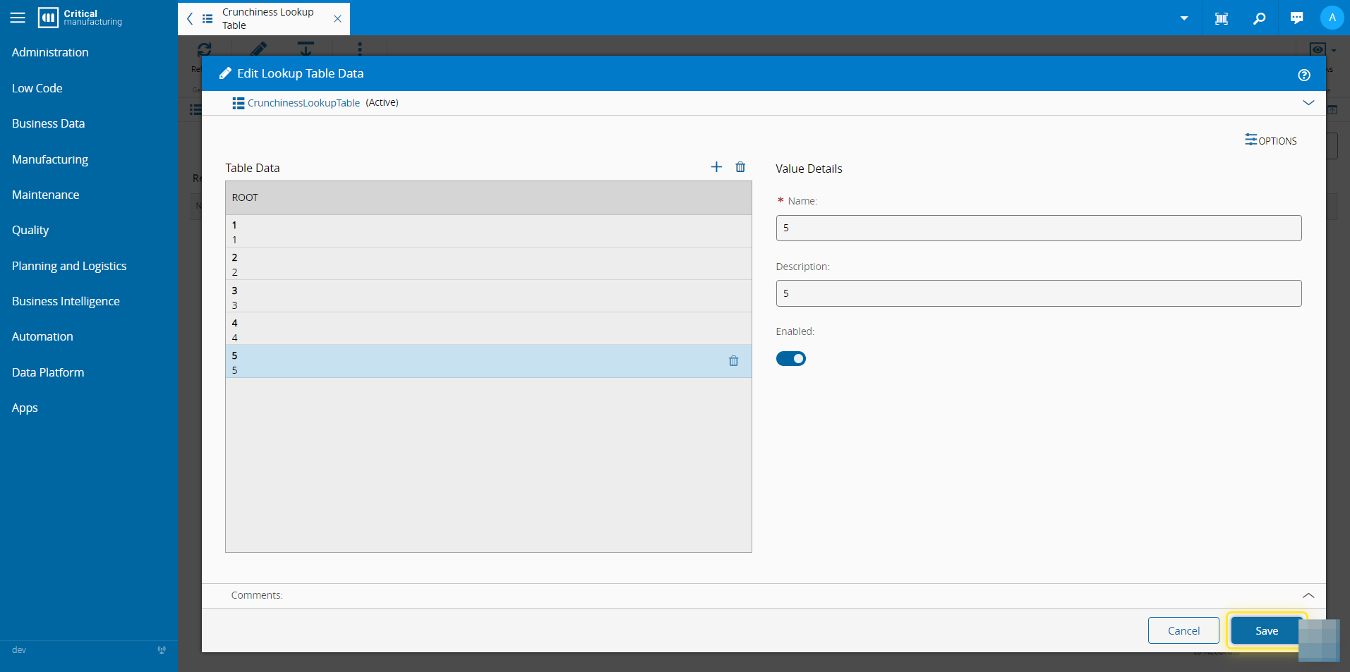 - 7. Select the Edit button to add values to the Lookup Table.