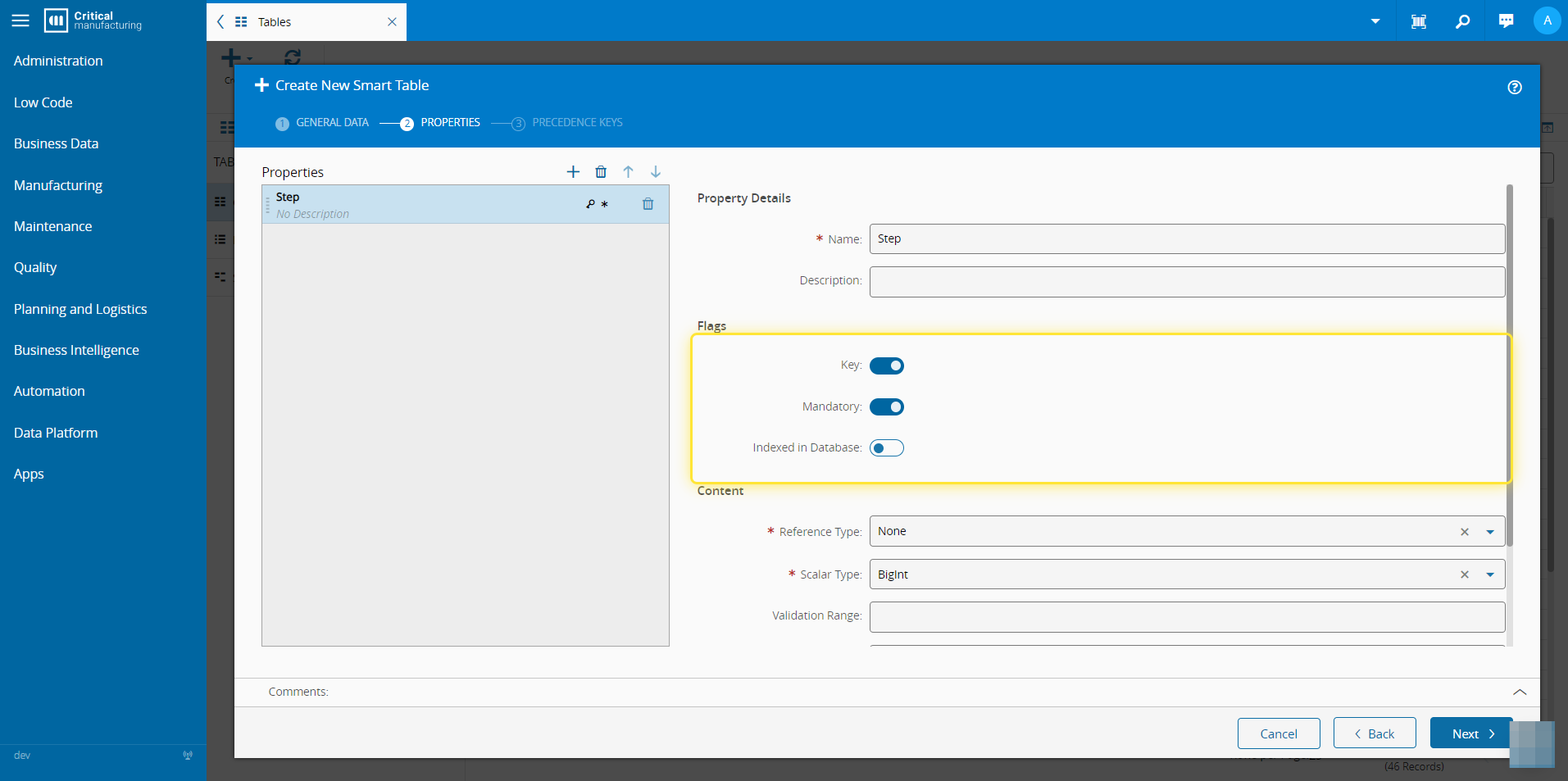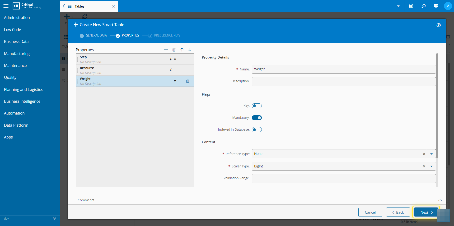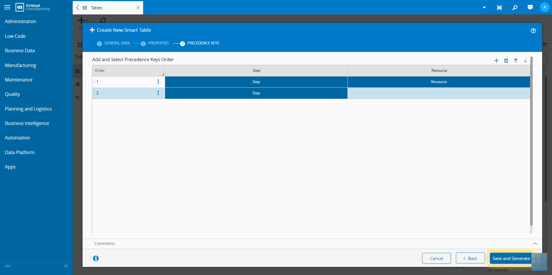For more information, see Smart Tables - Critical Manufacturing Documentation Portal ⧉