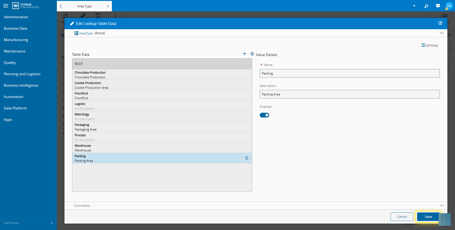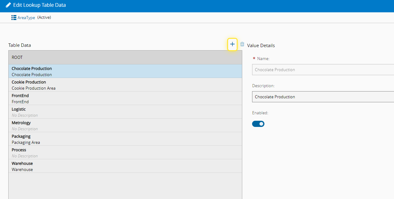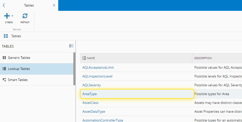 For more information, see Lookup Tables - Critical Manufacturing Documentation Portal ⧉